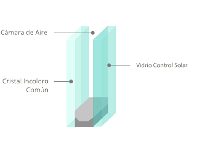 Termopanel Solar Control está formado por un cristal de Control Solar y un cristal común.